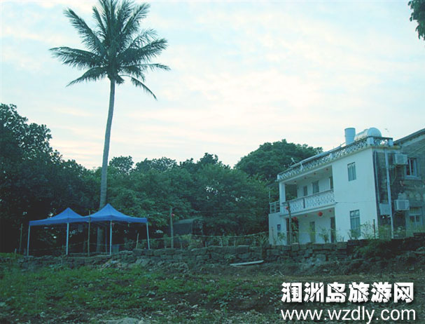 朗日漁家位于潿洲島東部海岸(下坑屯),正對斜陽島與景點五彩灘和天主教堂相鄰。院內(nèi)鑲嵌著珊瑚石建造而成的一座兩層海景樓房和一排鄉(xiāng)間瓦房,共25間,寬大的院里點綴著各種各樣的 熱帶水果、花圃,安靜別致。海邊海灘是游玩的好去處,一邊是平坦的沙灘是游泳、拾貝的好地方,一邊是經(jīng)海水沖刷而成的千姿百態(tài)的火山巖層,退潮時可以捉螃蟹,更是著名的 東海岸日出,壯觀、絢麗。