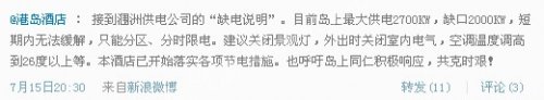 (各大潿洲島酒店開(kāi)始微博公告限電消息)