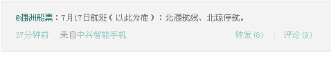 來(lái)自船務(wù)公司的最新消息,受海面西南大風(fēng)持續(xù)影響,7月17號(hào)潿洲航線繼續(xù)停航,恢復(fù)時(shí)間待定。
