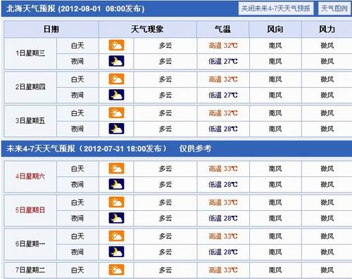 未來7日北海天氣晴 適宜出游