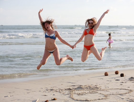 海邊拍照必備動(dòng)作之一