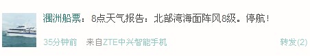 來自北海船務(wù)公司的通知,海面風(fēng)浪大,31號北海潿洲島航線全線停航,北瓊航線待定中。