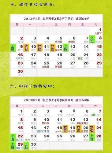 剛剛?cè)攵,就有網(wǎng)友忍不住制作了2013年節(jié)假日時間安排表,有網(wǎng)友說“就看到了明年的希望”。元旦、春節(jié)、清明節(jié)、勞動節(jié)、端午節(jié)、中秋節(jié)和國慶節(jié)的假期網(wǎng)友們已經(jīng)給你模擬出了,下面為您倒騰了兩份休假方案,結(jié)合年假,周末和法定節(jié)假日。出國旅游?時間完全木有問題!