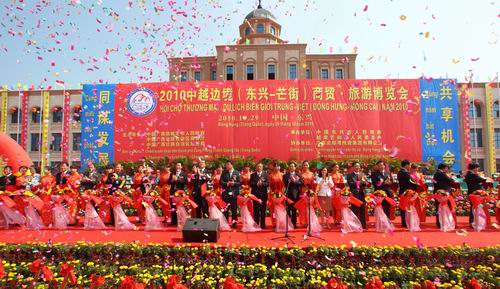一年一度的中越邊境(東興-芒街)商貿(mào)旅游博覽會(huì),是由中國(guó)廣西東興市和越南廣寧省芒街市共同打造,并輪流承辦的經(jīng)貿(mào)旅游交流盛會(huì)。自2006年以來,已成功舉辦六屆,廣受海內(nèi)外各方關(guān)注,參會(huì)人員、參展商品越來越多,知名度、影響力越來越大,已經(jīng)成為中越兩國(guó)乃至中國(guó)與東盟合作的重要平臺(tái)和典范。