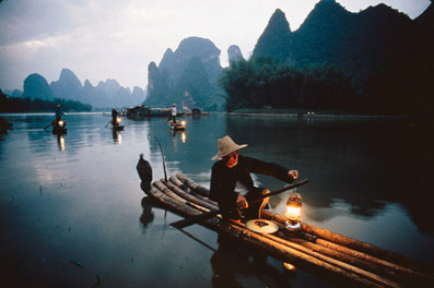 自宋代起,漓江就流行“漓江漁火”,它是陽(yáng)朔具有千年歷史積淀的人文民俗景觀,原是漓江上的一種傳統(tǒng)漁事活動(dòng):小竹筏上點(diǎn)一盞耀眼的燈火,燈光引來(lái)了趨光性的游魚(yú),魚(yú)鷹借著燈光,把魚(yú)兒捕獲叼給它的主人。夜幕下的江面,漁民成群結(jié)隊(duì)乘筏游梭,江面上便出現(xiàn)點(diǎn)點(diǎn)游星,與秀美絕倫的漓江山水大背景融成一幅令人嘆為觀止的絕妙景觀,成為傳統(tǒng)“陽(yáng)朔八景”之一“漓江漁火”。