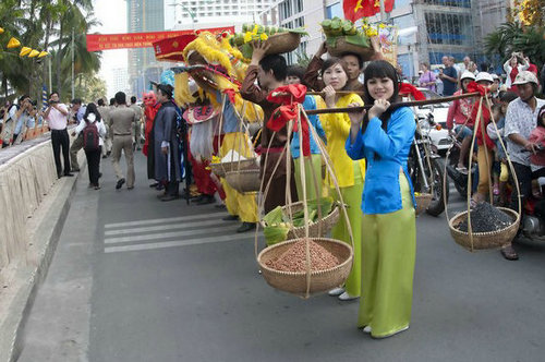 除了親友間互相拜訪,新春期間越南各地街頭、公園和公共娛樂場所,連續(xù)幾天舉行各種文娛活動,演出越南傳統(tǒng)戲劇、歌舞、雜技、武術、摔跤、舞獅等,還有蕩秋千、下人棋、斗雞、斗鳥等民間活動,整個越南沉浸在節(jié)日氣氛之中。
