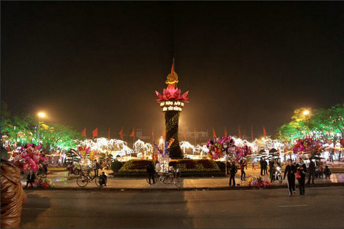 花市是越南春節(jié)重要活動之一。比如河內(nèi),春節(jié)前約10天,花市就開始熱鬧。越南人最愛的年花有劍蘭、大麗菊、金桔和桃花。除了鮮花、盆景,花市還出售各式氣球、彩燈、玩具、年畫、春聯(lián)、年歷等,把相連的幾條街道裝點得五彩繽紛,喜氣洋洋。