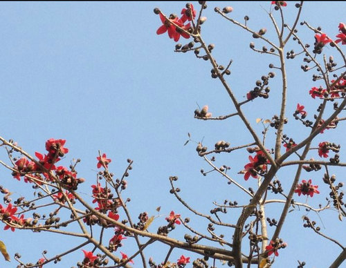 2013年3月7日早晨8點(diǎn),突然發(fā)現(xiàn)一樹的木棉花都開好了(王淳/攝)