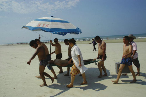 炎炎夏日一游客暈倒在銀灘