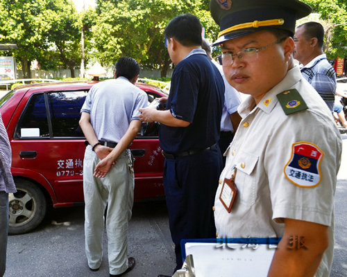 在經(jīng)過對司機(jī)的廣泛宣傳教育后,6月7日上午,北海市十家出租車公司、市交通綜合執(zhí)法支隊(duì)聯(lián)合采取行動(dòng),分別在云南路水產(chǎn)市場、天外天飯店門前等地設(shè)點(diǎn),突擊檢查出租車是否打表經(jīng)營、有無拒載等違章行為,十家出租車公司董事長、總經(jīng)理悉數(shù)參加行動(dòng)。