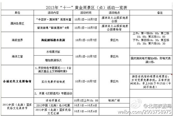 2013年“十一”黃金周來臨,北海各大景區(qū)為了迎接全國各地的客人紛紛推出了特色活動,來北海旅游的朋友可以注意一下咯,不要錯過了精彩節(jié)目。