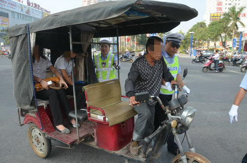 四車”交通違法行為不但損害了北海旅游城市的形象,還造成很大的安全隱患。近兩年,僅僅由三輪車引發(fā)的一般程序性交通事故就有86起,死亡3人,受傷23人。