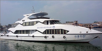 北部灣郵輪碼頭公司此次引進的“北港郵21”、“北港郵22”兩艘豪華觀光船是由中國著名的游艇制造企業(yè)太陽鳥游艇股份公司設(shè)計制造的,是集海上觀光、餐飲、娛樂和海上文化交流為一體的國內(nèi)海岸航線最豪華的游船之一。船長35.2米,寬7.7米,排水量84噸,兩艘共150客位,造價近千萬元。船艙共分三層,有可容納100人的自助餐廳,可容納50人的多功能卡拉OK娛樂廳和全視角海景觀光平臺等,讓游客在海上觀光的同時,還可享受到三星級以上酒店的待遇,為游客全程提供高品質(zhì)的享受。