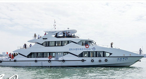 六艘游船當(dāng)中,可載游客50 人的“北港郵31、32 號(hào)”游輪,長(zhǎng)22.63 米,寬6 米?奢d游客150 人的“北港郵21、22 號(hào)”游輪,長(zhǎng)35 米,寬7.7 米?奢d游客300 人的“北港郵11、12號(hào)”游輪,長(zhǎng)49 米,寬10 米。游船外觀均為觀光玻璃鋼材質(zhì),船內(nèi)配備商務(wù)自助餐臺(tái)、會(huì)議投影儀、海景觀光平臺(tái)等設(shè)施。