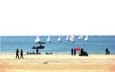 由國家體育總局水上運(yùn)動(dòng)管理中心主辦的2013年全國帆船帆板青少年訓(xùn)練營,日前在北海銀灘國家旅游度假區(qū)開營,進(jìn)行為期一個(gè)月的訓(xùn)練。11月29日上午,在北海銀灘看到,參加集訓(xùn)的80余名青少年駕帆滑浪,為銀灘景區(qū)增添了一道靚麗的風(fēng)景。