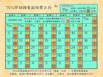 中國鐵路客戶服務中心網(wǎng)站昨天發(fā)布了2014年春運售票公告,2014年1月16日-2月24日為2014年鐵路春運時間。預定旅客列車互聯(lián)網(wǎng)、電話訂票預售期為20天。車站窗口、代售點、自動售票機預售期為18天。春運期間臨客車票預售期提前。
