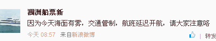 北海船務也于今天早上宣布因為今天海面有霧,交通管制,潿洲島航班延遲開航。業(yè)內(nèi)人士預計未來兩三天海面風浪大,很可能持續(xù)出現(xiàn)陣風八級,潿洲島恐要停航,計劃周末出游的朋友要注意關注天氣預報信息更新,及時調(diào)整行程咯。