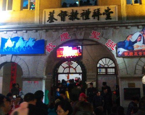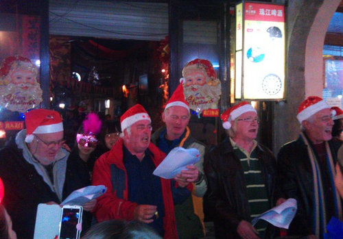 而今年12月24日平安夜,這里更是人山人海,幾個(gè)外國(guó)朋友歡樂的為大家唱詩(shī)。