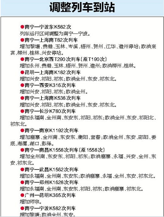 南寧火車站啟動新運行圖 部分列車停運