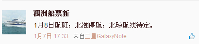冷空氣影響潿洲島今日停航