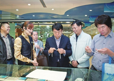 據(jù)報(bào)道,近日,全國(guó)工商聯(lián)旅游業(yè)商會(huì)副會(huì)長(zhǎng)郝續(xù)寬一行在自治區(qū)投資促進(jìn)局項(xiàng)目處副處長(zhǎng)曾偉等陪同下,來(lái)到廣西首家四星級(jí)旅游購(gòu)物店——北海南珠宮總部展銷(xiāo)中心調(diào)研。