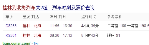 桂林到北海列車時(shí)刻