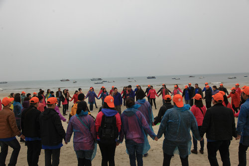 一百八十多名客人一下子給北海初春平靜的海灘帶來了無限活力,在專業(yè)教練的帶領(lǐng)下大家互相信任,團(tuán)結(jié)協(xié)作玩起了集體游戲,天空突然飄下幾滴小雨來湊熱鬧,但很快就又消失在大家的歡聲笑語中。