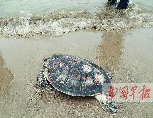 對(duì)此,北京市農(nóng)業(yè)局副局長(zhǎng)李全錄直言不諱:“山東、廣東近海作業(yè)繁忙,海洋環(huán)境受到一定影響,為了放流海洋動(dòng)物的安全和健康,我們不再選擇那里。廣西北部灣海域海水較為潔凈,各種海洋資源豐富,而且本來(lái)就有海龜分布,放生到這里有利于它們的生長(zhǎng)、繁衍!彼H眼見(jiàn)識(shí)到北海潔白的沙灘、清澈的海水后,不禁感慨;“北部灣海域的海水真好,這兩只小海龜真幸福!”