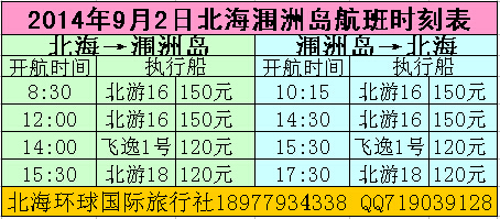 2014年9月2日北海潿洲島航班時(shí)刻表: