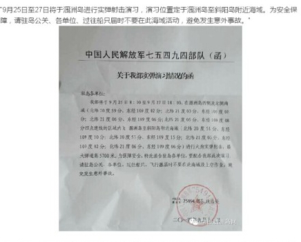 9月25—27日潿洲島因軍演將停航