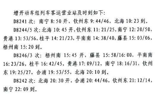 國(guó)慶北海方向再增開(kāi)四趟動(dòng)車