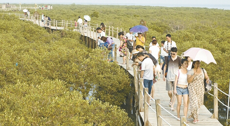 記者在走訪中了解到,今年“十一”黃金周的天氣總體較好,適宜出行。10月2日上午、4日上午市區(qū)均下了一場較大的陣雨,5日起受中等強度冷空氣影響,海面風(fēng)力較大。然而,短暫的降雨和溫柔的冷空氣,并沒降低游客們暢游北海的熱情。每天,銀灘、潿洲島、珠海路老街、金海灣紅樹林、海底世界、海洋之窗、星島湖、大江埠、合浦漢文化博物館、嘉和?冠山海等十大景區(qū)游人如織,歡樂如潮。