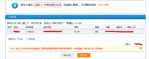 有網(wǎng)友在搶票中各種抱怨,“剛登陸沒多久就沒票啦!回家無望!”“還能不能愉快的玩耍了?一年一次的旅行要泡湯了”。別急,咱還有機(jī)會(huì)哦。在中國鐵路客戶服務(wù)中心網(wǎng)上訂票,必須在45分鐘之內(nèi)完成付款以及其余的全部操作才算是預(yù)訂成功,那么用戶可以等待在開售時(shí)間的45分鐘之后還有一波未完成付款的票退回到庫中,這時(shí)又是一波搶票的好時(shí)機(jī)哦,運(yùn)氣好的話,45分鐘之后的45分鐘還有可以嘗試的機(jī)會(huì)!