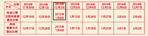 元旦出游車票開搶日期 注:2014年12月2日可買到2015年1月1日-1月6日的票