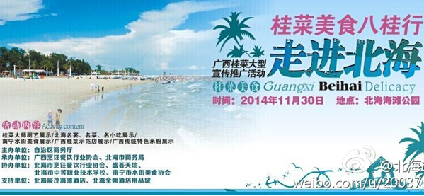 為進(jìn)一步引導(dǎo)餐飲業(yè)加快轉(zhuǎn)變發(fā)展方式,打造桂菜品牌,培育餐飲名店,營(yíng)造有利于餐飲業(yè)發(fā)展的良好社會(huì)氛圍,由廣西壯族自治區(qū)商務(wù)廳主辦,廣西烹飪餐飲行業(yè)協(xié)會(huì)、北海市商務(wù)局聯(lián)合承辦的“桂菜美食八桂行—走進(jìn)北海”宣傳活動(dòng)將于11月30日在北海海灘公園舉行。