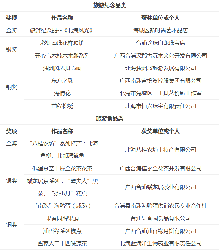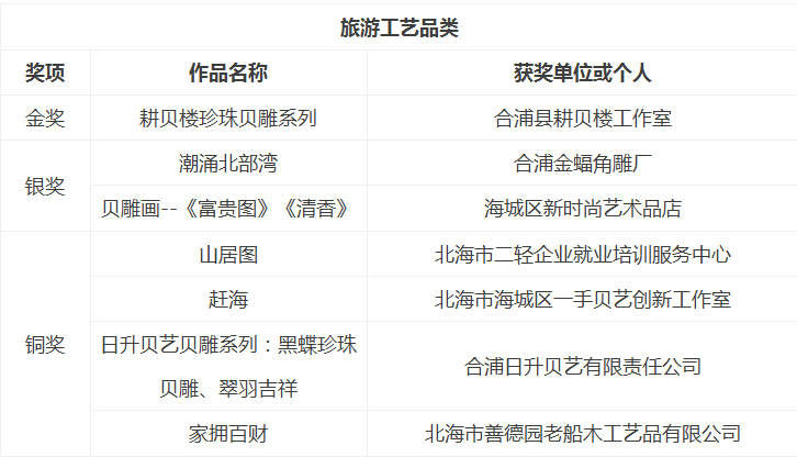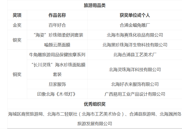 北海優(yōu)秀旅游商品評選結(jié)果公告