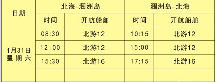 由于還沒風(fēng)浪相對(duì)減弱,船務(wù)公司今天下午宣布明天潿洲島復(fù)航,1月31日航班:北海-潿洲【0830北游12,1200北游12,1530北游16】;潿洲-北!1015北游12,1500北游12,1715北游16】;北海-海口【1800北1號(hào)】;?-北!1900北2號(hào)】。