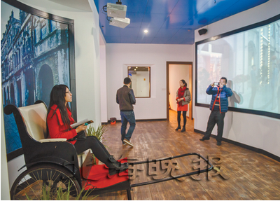 當(dāng)天,記者和商戶代表們首先來(lái)到位于珠海中路102號(hào)的老城歷史文化館。該館通過(guò)多媒體、場(chǎng)景復(fù)原、實(shí)物等方式,展示了老城獨(dú)具特色的歷史遺存,在梳理北海老城的歷史脈絡(luò)中重現(xiàn)昔日繁華景象。參觀者梁女士坐上館內(nèi)設(shè)置的黃包車(chē)后,面前的大幅屏幕隨即亮了起來(lái),用第一人稱的視角展現(xiàn)著百年老街的發(fā)展歷程,“好像車(chē)夫拉著我穿梭在民國(guó)時(shí)代的老街,以這樣的方式游覽老街感覺(jué)很特別。”梁女士說(shuō)。