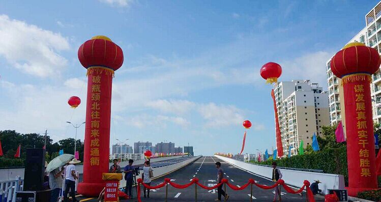北海廣東路跨鐵路立交橋今日開(kāi)始正式通車(chē)?yán),廣東南路跨鐵路立交橋起于廣東南路和站前路交匯處,向南跨越欽北鐵路,再與廣東南路順接。整個(gè)橋?yàn)槟媳弊呦,設(shè)計(jì)時(shí)速每小時(shí)50公里,瀝青混凝土路面。立交橋上的主車(chē)道為雙向6車(chē)道,預(yù)留非機(jī)動(dòng)車(chē)道,橋下輔道(就是我們常說(shuō)的火車(chē)橋底)雙向4車(chē)道,加起來(lái)等于雙向10車(chē)道,非常的寬闊。