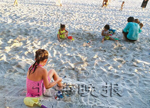 在銀灘上,孩子獨自玩耍