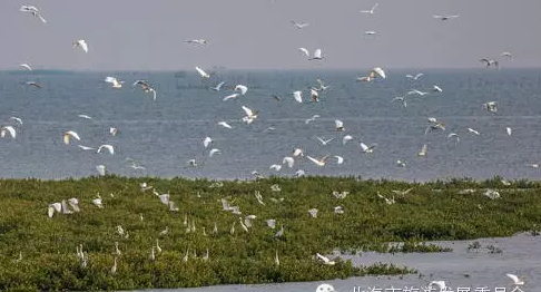 景區(qū)內(nèi)密密匝匝的紅樹(shù)林,宛如一位綠色的仙女飄逸瀟灑,在淺綠色的海水中沐浴。漲潮時(shí),只看到她部分婀娜的樹(shù)冠,饒有“猶抱琵琶半遮面”的情趣;退潮時(shí),她那帶有海泥芬芳的樹(shù)干含羞姍姍地露出海面,好一幅“千呼萬(wàn)喚始出來(lái)”的畫(huà)面!