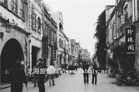 北海老街一般指中山路和珠海路,是一條有一百多年歷史的老街,始建于1883年,長1.44公里,寬9米,沿街全是中西合璧騎樓式建筑。吸收了嶺南建筑的特點,又吸收了西方建筑的風(fēng)格。
