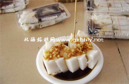 (正經(jīng)臉介紹)水籺,廣西北海的一道特色小吃,用米磨成漿蒸熟,一般有5層,每層不超過5mm,最上層鋪的“佐料”:有豬肉、蝦米、木耳、芹菜、竹筍等。放上醬、醋和拍碎的蒜米配成調(diào)料,酸甜咸辣,鮮嫩爽滑,超爽!
