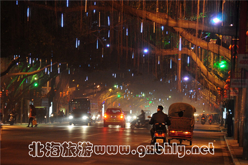 北海的天氣一向很好,夜晚一陣清涼的風(fēng),我懶懶的漫步在華燈交相輝映的路上,感受著徐徐晚風(fēng)吹過的愜意,多情的心便在這靜謐的夜晚蔓延,燈火闌珊的夜晚,華燈初上。