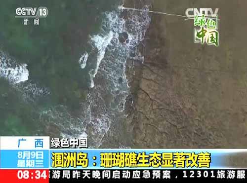 8月9日上午,中央電視臺新聞頻道《朝聞天下》直播潿洲島珊瑚礁生態(tài)顯著改善的新聞。這是今年6月29日中央電視臺新聞頻道播出潿洲島珊瑚礁生態(tài)聯(lián)合科考的新聞之后,兩個月內(nèi)第二次播出潿洲島珊瑚礁生態(tài)新聞。