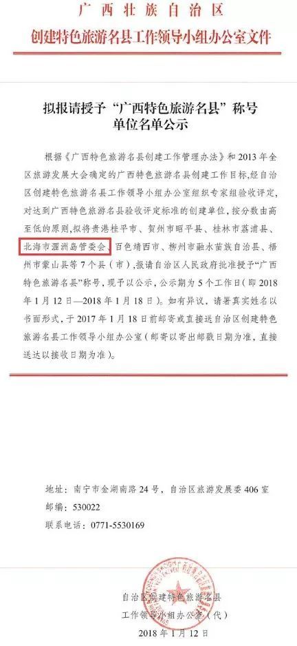 廣西北海旅行社1月13日訊 1月12日,旅小妹從區(qū)旅發(fā)委獲悉,自治區(qū)創(chuàng)建特色旅游名縣工作領(lǐng)導(dǎo)小組辦公室對擬授予“廣西特色旅游名縣”稱號的7個縣(市、區(qū))進行公示,北海市潿洲島管委會名列其中。