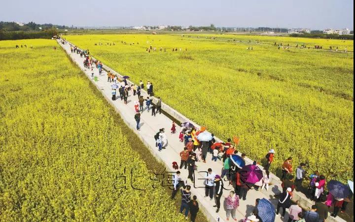 大批游客在赤西村觀賞油菜花李君光