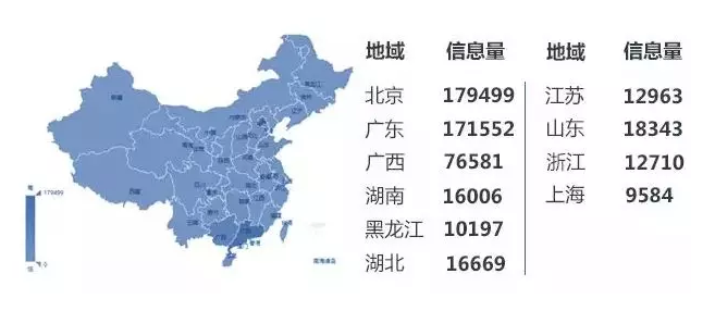 據(jù)悉,在監(jiān)測(cè)時(shí)間段內(nèi),涉及廣西旅游行業(yè)的相關(guān)信息共有近60.6萬(wàn)條,其中敏感信息3.0萬(wàn)條,其他信息57.2萬(wàn)條,廣西旅游相關(guān)信息整體分布較為平均,受關(guān)注度較為持續(xù)。從地域分析看,除廣西本地的網(wǎng)友外,北京和廣東的網(wǎng)友對(duì)廣西旅游的相關(guān)信息也同樣關(guān)注。