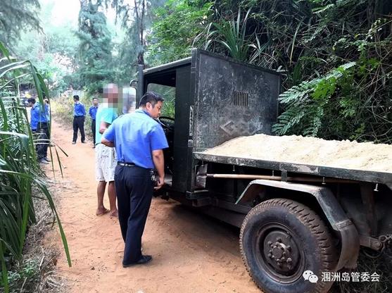 2018年11月12日下午,潿洲島旅游區(qū)綜合行政執(zhí)法大隊接到群眾舉報,發(fā)現(xiàn)一名男子于11月11日-12日連續(xù)兩天在潿洲島北岸貝殼沙灘非法采挖盜取海沙。當天下午六點,執(zhí)法人員立即展開查處。