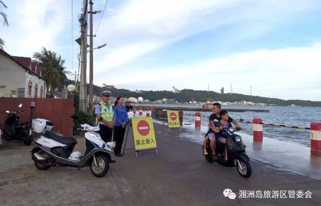 因西南浪過大,為保障廣大群眾和游客朋友們的生命安全,潿洲島旅游區(qū)管委會組織潿洲鎮(zhèn)政府、交警、綜合執(zhí)法等部門,近期對南灣街實行交通管制,在浪大期間禁止一切車輛和行人進入南灣街,待浪潮退去再恢復(fù)通行。
